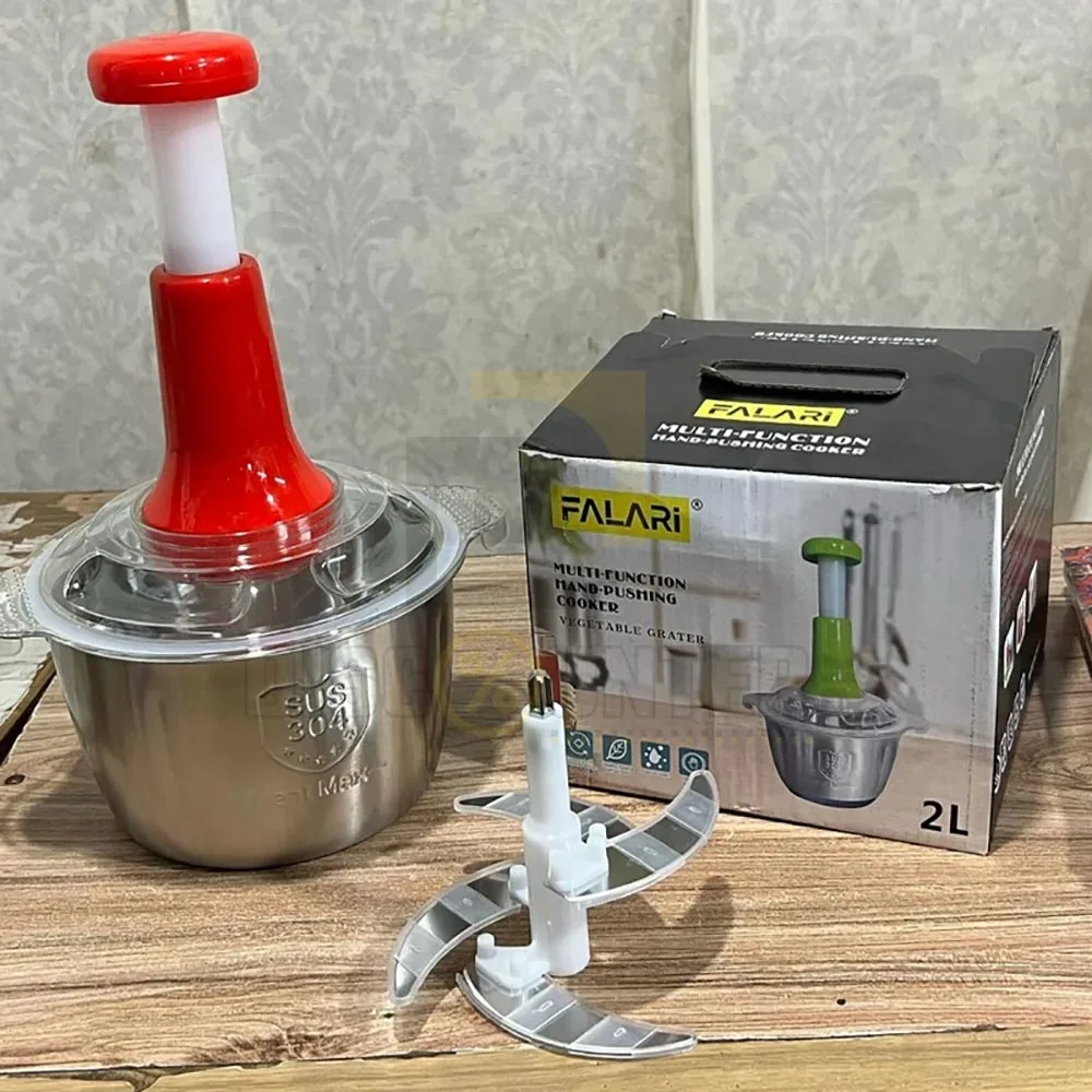 Built with a strong metallic finish and a large 2.0 Ltrs capacity, it’s perfect for families and bulk food prep. The smooth push mechanism ensures uniform chopping with minimal effort, helping you save time while keeping your kitchen clean and organized.
